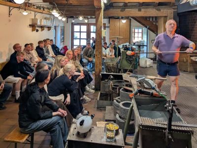 Nach der Anreise über München und dem Einchecken im Hotel Am Regenbogen begann das gemeinsame Programm am Montag mit einer Begrüßung durch den Zweiten Bürgermeister der Stadt Cham und einer kleinen Stadtführung. Im Anschluss führte der Weg nach Furth im Wald, wo die Gäste die geheimnisvollen Felsengänge erkundeten. Nach dem Mittagessen beim Lindnerbräu in Bad Kötzting stand der Besuch des Glasdorfs Weinfurtner in Arnbruck auf dem Programm. Hier konnten die dänischen Schüler den Glasbläsern bei ihrer Arbeit über die Schulter schauen, bevor eine Wanderung auf den Kaitersberg den erlebnisreichen Tag abrundete.