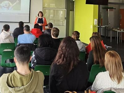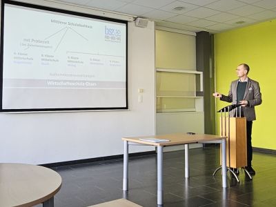 Martina Dorner erläuterte das Schulkonzept „Wirtschaftsschule weiter gedacht“. Dieses steht für eine moderne, praxisnahe und zukunftsorientierte Ausbildung. Wahlmodule wie Fit for Finance, E-Commerce, Umwelttechnik, Tourismus oder Persönliche Entwicklung gehen dabei weit über den klassischen Wirtschaftsunterricht hinaus. Ein zentrales Element ist das Übungsunternehmen, in dem die Schülerinnen und Schüler reale betriebliche Abläufe wie Einkauf, Verkauf, Buchhaltung oder Marketing praktisch durchführen. So erleben sie Wirtschaft nicht nur theoretisch, sondern handeln selbst unter möglichst realistischen Bedingungen. Praktika, die in Zusammenarbeit mit der FOS und Unterstützung der FOS-Schülerinnen und Schüler als Tutoren der Wirtschaftsschülerinnen und -schüler in regionalen Unternehmen, kommunalen oder staatlichen Organisationen vorbereitet und durchgeführt werden, bieten den optimalen Einstieg in die Berufswelt.