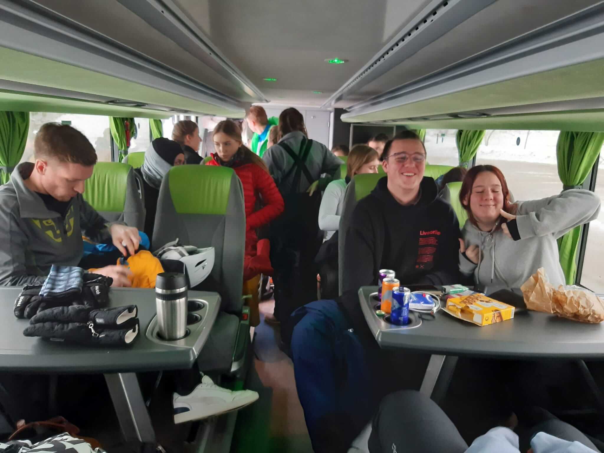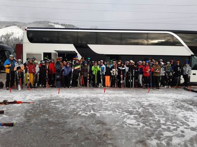 Nach dreijähriger Coronazwangspause war es endlich wieder so weit. Die beliebte Tagesskifahrt mit Après-Ski konnte wieder stattfinden. Mit einer Rekordbeteiligung starteten 80 Schüler und Lehrer des BSZ Cham mit einem Doppeldeckerbus um 05:00 Uhr am Samstag in der Früh in die Flachau.