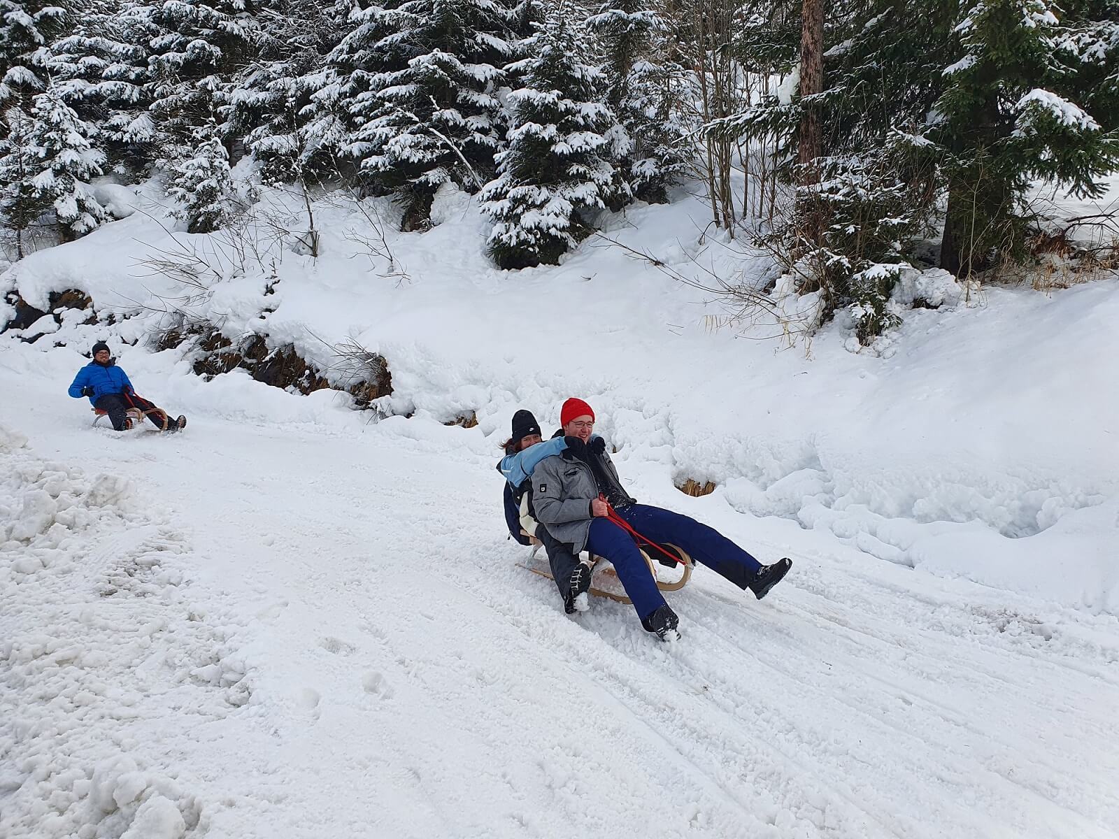 Die Tage zuvor hatte es reichlich an Neuschnee gegeben, sodass sowohl die Ski- und Snowboardfahrer als auch die Rodler beste Pistenbedingungen vorfanden. Nach der sportlichen Betätigung setzte man zum traditionellen Einkehrschwung in das Lokal Dampfkessel ein. Hier stärkten sich die Chamer mit einer typisch österreichischen Jause und feierten bis spät in die Abendstunden hinein. Die Heimfahrt im Bus verlief anschließend sehr ruhig und einige Teilnehmer träumten von den Erlebnissen des Tages. Der Ausflug ins Salzburger Land war ein sehr schönes Gemeinschaftserlebnis und viele Schüler haben sich bereits jetzt für die Fahrt im nächsten Jahr angemeldet.