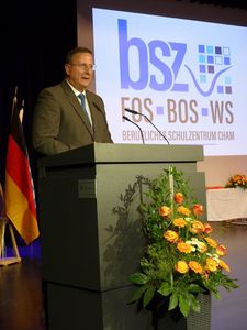 Als ehemaliger FOSler durfte Landrats-Stellvertreter Markus Müller zu den Absolventen sprechen. Er gratulierte im Namen des Landkreises Cham zu den Abschlüssen, „über ihre Leistung und ihre Ausdauer dürfen sie stolz sein, ebenso ihre Eltern und Lehrer“. Für die aktuelle Generalsanierung des Stammgebäudes der Schule nehme der Landkreis mit Überzeugung viel Geld in die Hand. Egal wohin es die Absolventen nun zum Studieren oder Arbeiten verschlagen würde, lautete Müllers abschließender Wunsch: „Kommen Sie wieder zurück, der Landkreis Cham braucht kluge Köpfe“.