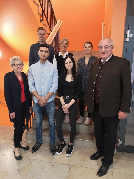 Auch Landrat Franz Löffler ließ es sich nicht nehmen, eine Stippvisite an der FOSBOS einzulegen, um mit den drei künftigen Medizinstudenten, die letztes Schuljahr die 13. Klasse im Gesundheitszweig absolviert haben, über ihre Zukunftspläne zu sprechen. Annika Rückerl erzählte, dass sie derzeit noch auf der Wohnungssuche in Jena sei, denn dort beginne sie ihr Medizinstudium Mitte Oktober. Ihre ehemalige Klassenkameradin Emelie Kejker möchte vor der Aufnahme ihres Studiums erst noch die Ausbildung zur Rettungssanitäterin beim BRK voranstellen. Für Alex Alnajjar, der vor seiner Zeit an der FOS eine Ausbildung als medizinischer Fachangestellter in der Praxis Dres. Schloßbauer / Graßl in Bad Kötzting absolviert hat, beginnen die ersten Vorlesungen in Humanmedizin schon nächste Woche. Wie die beiden anderen könnte auch er sich gut vorstellen, später als Arzt im Landkreis Cham zu arbeiten.