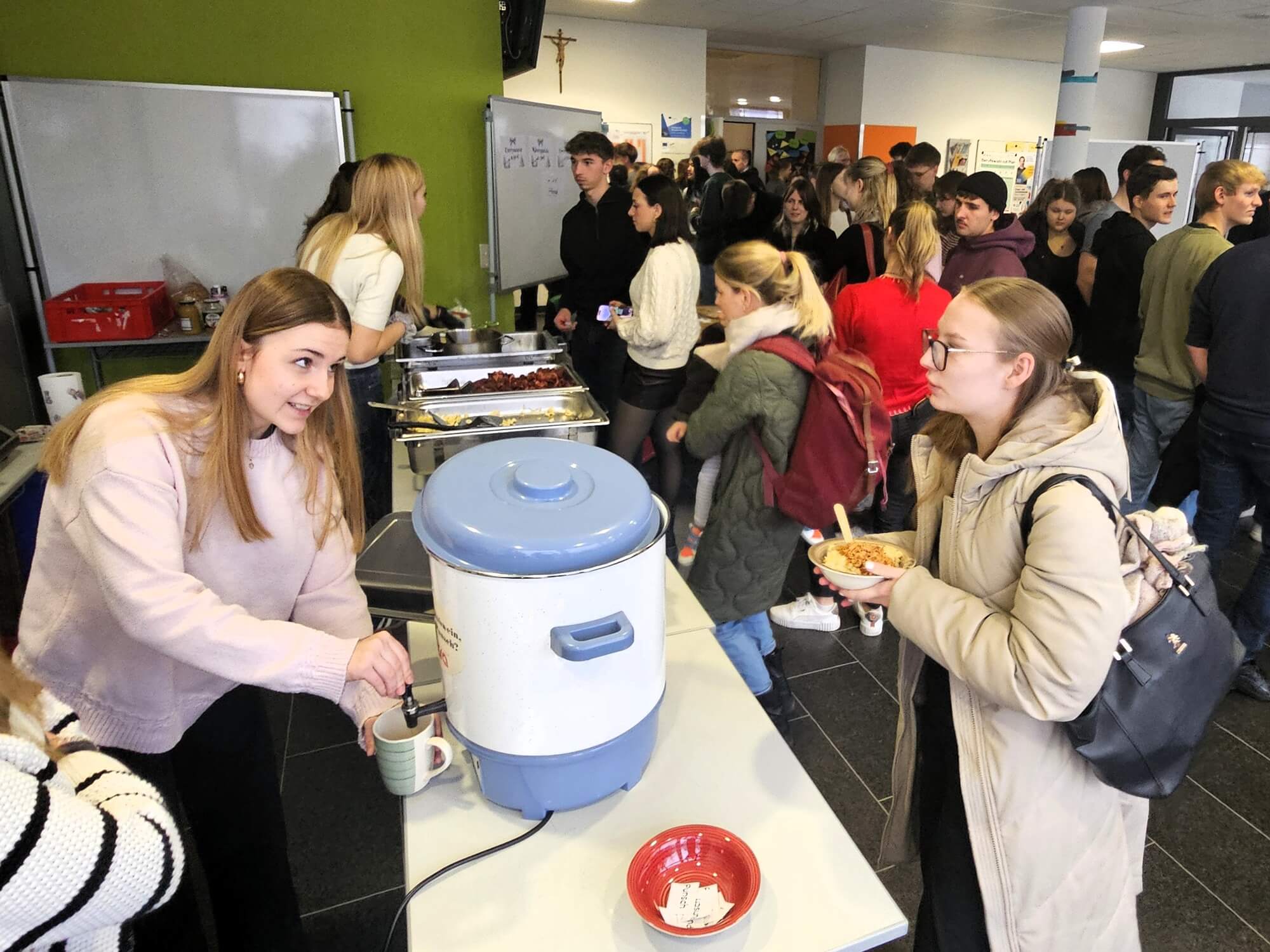 Am letzten Schultag organisierte die SMV mit Verbindungslehrerin Patricia Kuchenreuter im Erweiterungsbau eine Weihnachtsaktion mit vielfältigem Programm. Die 13. Gesundheitsklasse kümmerte sich mit Unterstützung des Rötzer Fürstenkastens um das leibliche Wohl der Mitschülerschaft und des Lehrerkollegiums. Neben Currywurst und Kässpatzen war mit leckerem Kaiserschmarrn ebenso für einen süßen Nachschlag gesorgt. Auch alkoholfreier Punsch war sehr gefragt. Auch in den Klassenzimmern war jede Menge Abwechslung gewährleistet: An zahlreichen Brettern wurde Schach gespielt. Ebenfalls guten Anklang fanden das Lehrer-Quiz mit Schnappschüssen der Pädagogen aus Kinder- und Jugendtagen, das Christmas-Song-Bingo oder die populäre Videospiel-Reihe Mario Kart.