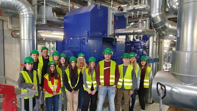 Anschließend wurde die Gruppe von einem Mitarbeiter durch den Maschinenraum geführt. Anhand seiner Erklärungen wurde den Schülern der Prozess klar: Durch das Verbrennen der Hackschnitzel wird Wasser erhitzt und verdampft. Dadurch wird Strom in einer Turbine und viel heißes Wasser erzeugt. Die Molkerei Goldsteig ist der größte Abnehmer des warmen Heizungswassers, aber auch das Krankenhaus und rund 1000 Haushalte können so mit Wärme versorgt werden.